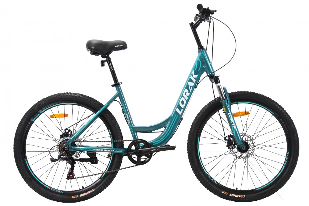 Цвет # Золотисто Серый Материал рамы # алюминий Тип тормозов # дисковый механический Диаметр колес # 27.5 Рама # 17" (на рост 155-173) Вилка # STEEL ход 80 мм, пружинно-эластомерная Количество скоростей # 7 Передний переключатель # - Задний переключатель # LTWOO A2 или Shimano TZ500 (зависит от партии) Передний тормоз # YinXIng или JAK-8 mech. disc 160 механический Задний тормоз # YinXIng или JAK-8 mech. disc 160 механический Манетки # LTWOO A2 триггер Shimano ST-EF-41 (зависит от партии) Шатуны # 1ск. 36Т 170MM алюминий Каретка # FP Feimin картридж Задние звезды # ATA 7 скоростей трещетка Втулки # сталь Shengfu подшипники насыпные или на промах (зависит от партии) Покрышки # Compas 27.5*2.0 Обода # двойной DA-18 Цепь # KMC C050 Руль # Lorak стальной 680W Вынос # Lorak стальной подъемный Подседельный штырь # Lorak 27.2*300MM Рулевая колонка # Neco резьбовая Седло # Lorak 6558 Педали # пластик FP Вес # 15,9 кг